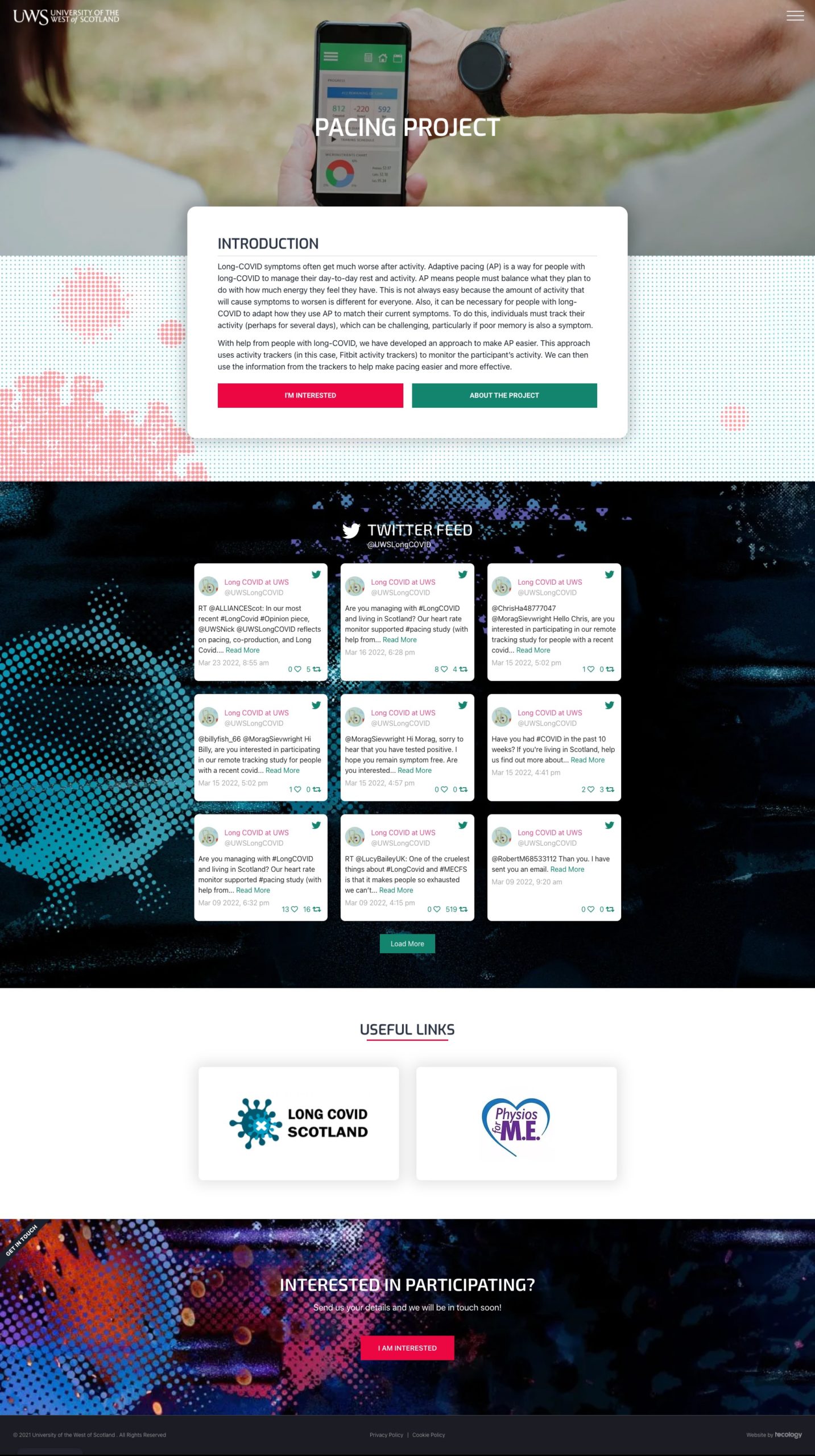 Our third project website with the University of the West of Scotland aims to recruit participants into their Active Pacing (AP) programme. This project aims to help those suffering from Long-Covid through application intervention.